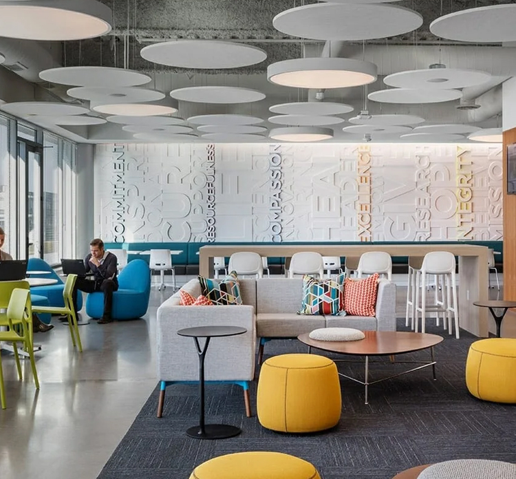 There is also a trend toward unassigned workspaces with a variety of furniture types to support a variety of activities. Lounge areas with smartboards for collaborative work, small breakout rooms for more private tasks or those requiring absolute concentration, desks for the head-down-get-work-done moments, etc. Allowing your team to work in an environment that best supports the task at hand is being encouraged throughout the office interior design world. Furniture manufacturers have stepped up to the plate and are offering amazing and innovative systems to back this trend that we expect will become the norm in office design.